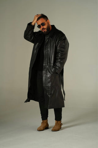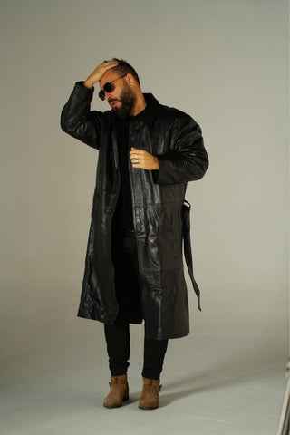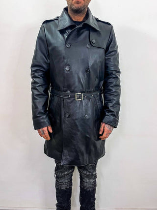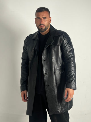 Cappotto in pelle lungo nero nappa effetto liscio