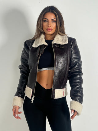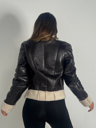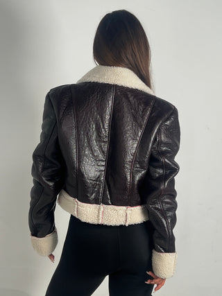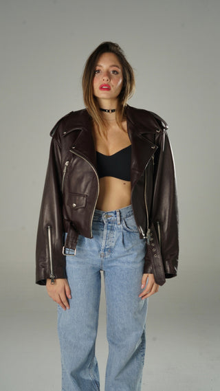 Chiodo biker over short in pelle marrone