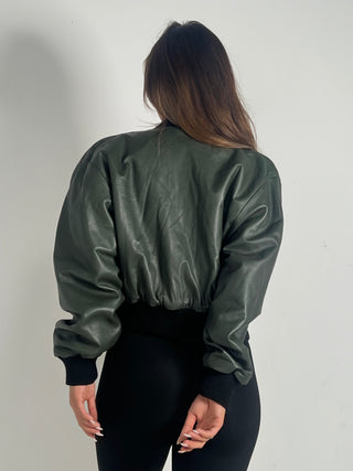 Bomber in pelle verde militare in nappa