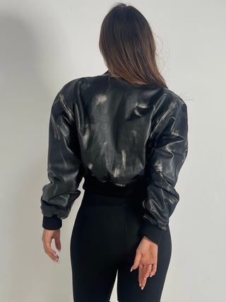 Bomber in pelle nero decolorato nappa