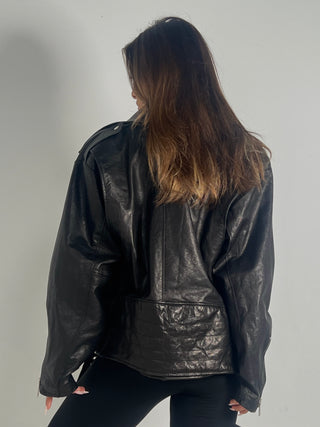 Chiodo biker in pelle nera nappa liscia