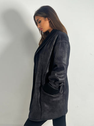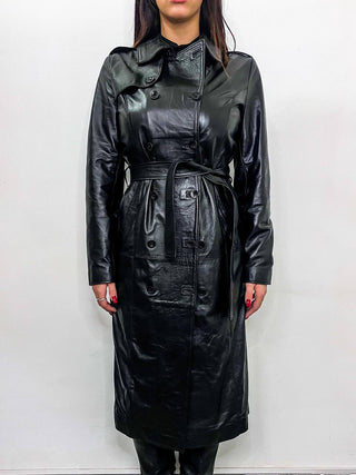 Cappotto in pelle lungo nero nappa effetto liscio