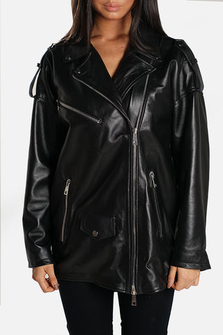 Chiodo biker over in pelle vegetale