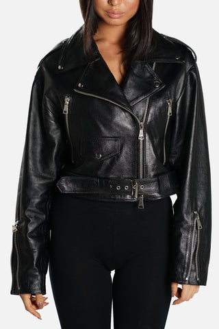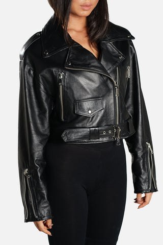 Chiodo biker over short in pelle nero