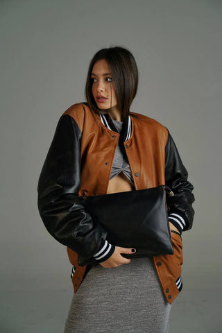 Giubbotto Bomber in pelle cognac/nero nappa
